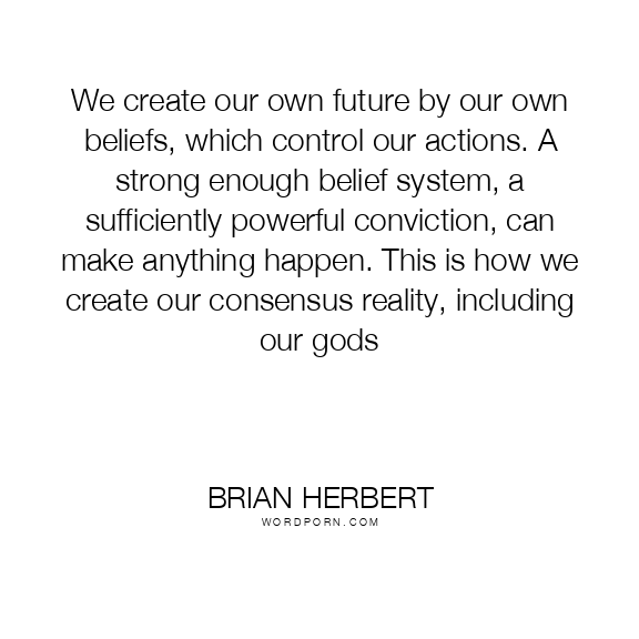 We create our own future by our own beliefs, which control our actions. A strong enough belief system, a sufficiently powerful conviction, can make anything happen. This is how we create our consensus reality, including our gods