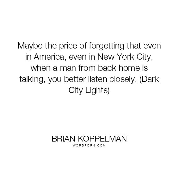 Maybe the price of forgetting that even in America, even in New York City, when a man from back home is talking, you better listen closely. (Dark City Lights)
