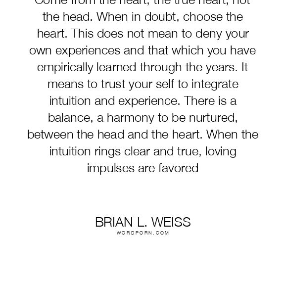 Come from the heart, the true heart, not the head. When in doubt, choose the heart. This does not mean to deny your own experiences and that which you have empirically learned through the years. It means to trust your self to integrate intuition and experience. There is a balance, a harmony to be nurtured, between the head and the heart. When the intuition rings clear and true, loving impulses are favored