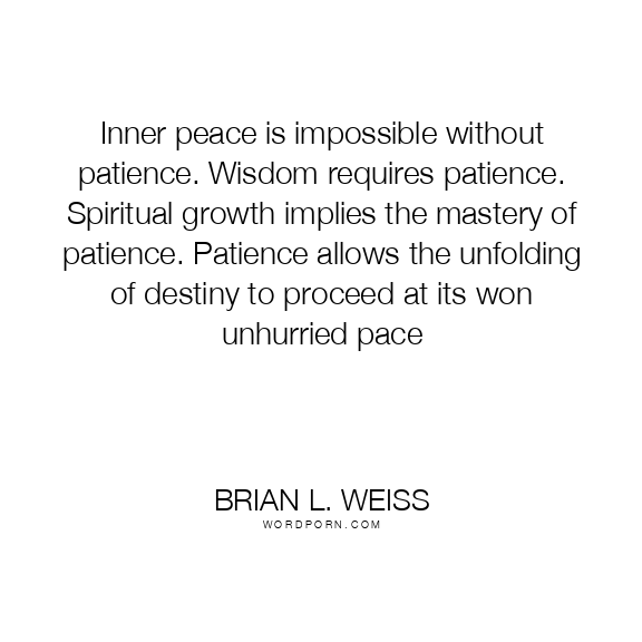 Inner peace is impossible without patience. Wisdom requires patience. Spiritual growth implies the mastery of patience. Patience allows the unfolding of destiny to proceed at its won unhurried pace