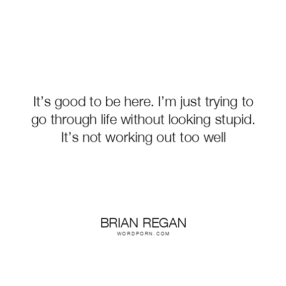 It’s good to be here. I’m just trying to go through life without looking stupid. It’s not working out too well