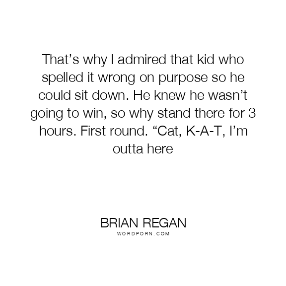 That’s why I admired that kid who spelled it wrong on purpose so he could sit down. He knew he wasn’t going to win, so why stand there for 3 hours. First round. “Cat, K-A-T, I’m outta here