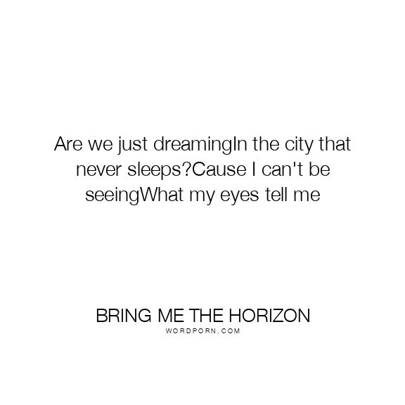 Copy Image Are we just dreamingIn the city that never sleeps?Cause I can't be seeingWhat my eyes tell me Moms Typewriter A A SAVE THIS IMAGE