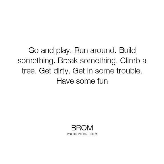 Go and play. Run around. Build something. Break something. Climb a tree. Get dirty. Get in some trouble. Have some fun