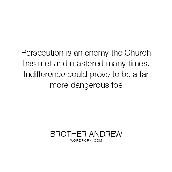 Persecution is an enemy the Church has met and mastered many times. Indifference could prove to be a far more dangerous foe