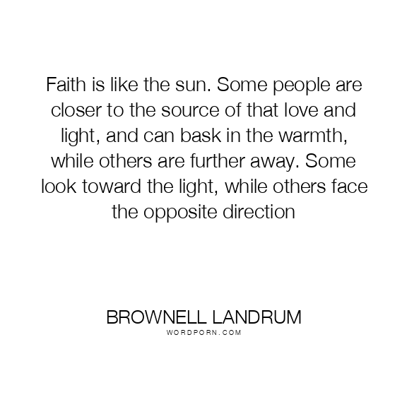Faith is like the sun. Some people are closer to the source of that love and light, and can bask in the warmth, while others are further away. Some look toward the light, while others face the opposite direction