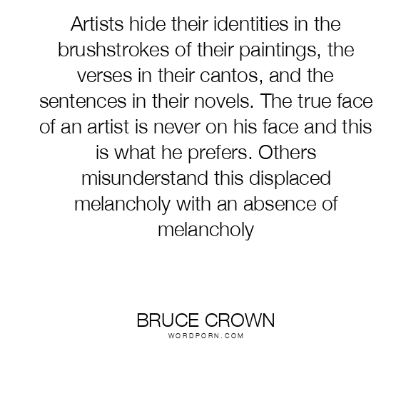 Artists hide their identities in the brushstrokes of their paintings, the verses in their cantos, and the sentences in their novels. The true face of an artist is never on his face and this is what he prefers. Others misunderstand this displaced melancholy with an absence of melancholy
