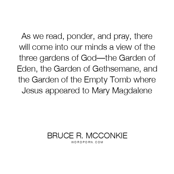 As we read, ponder, and pray, there will come into our minds a view of the three gardens of God—the Garden of Eden, the Garden of Gethsemane, and the Garden of the Empty Tomb where Jesus appeared to Mary Magdalene