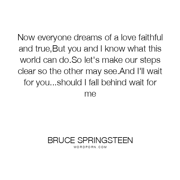 Now everyone dreams of a love faithful and true,But you and I know what this world can do.So let's make our steps clear so the other may see.And I'll wait for you...should I fall behind wait for me