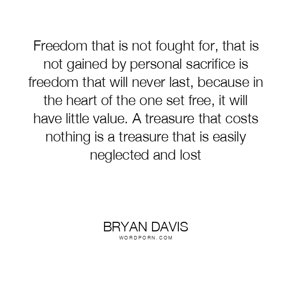 Freedom that is not fought for, that is not gained by personal sacrifice is freedom that will never last, because in the heart of the one set free, it will have little value. A treasure that costs nothing is a treasure that is easily neglected and lost