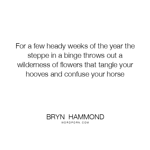 For a few heady weeks of the year the steppe in a binge throws out a wilderness of flowers that tangle your hooves and confuse your horse