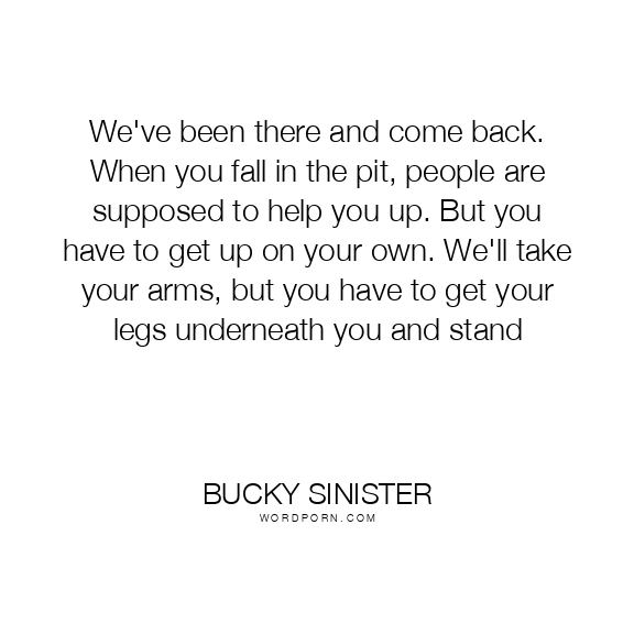 We've been there and come back. When you fall in the pit, people are supposed to help you up. But you have to get up on your own. We'll take your arms, but you have to get your legs underneath you and stand