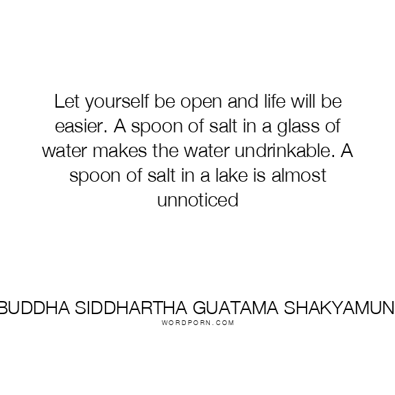 Let yourself be open and life will be easier. A spoon of salt in a glass of water makes the water undrinkable. A spoon of salt in a lake is almost unnoticed