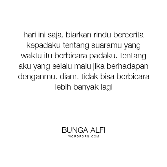 hari ini saja. biarkan rindu bercerita kepadaku tentang suaramu yang waktu itu berbicara padaku. tentang aku yang selalu malu jika berhadapan denganmu. diam, tidak bisa berbicara lebih banyak lagi