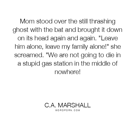 Mom stood over the still thrashing ghost with the bat and brought it down on its head again and again. "Leave him alone, leave my family alone!" she screamed. "We are not going to die in a stupid gas station in the middle of nowhere!