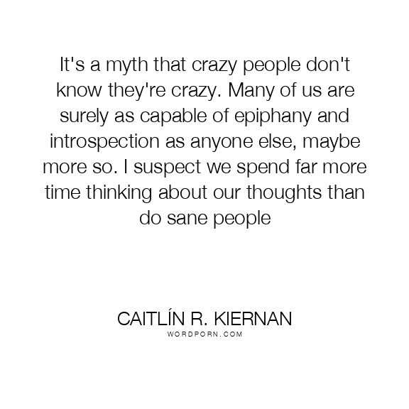 It's a myth that crazy people don't know they're crazy. Many of us are surely as capable of epiphany and introspection as anyone else, maybe more so. I suspect we spend far more time thinking about our thoughts than do sane people