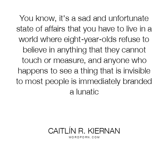 You know, it's a sad and unfortunate state of affairs that you have to live in a world where eight-year-olds refuse to believe in anything that they cannot touch or measure, and anyone who happens to see a thing that is invisible to most people is immediately branded a lunatic