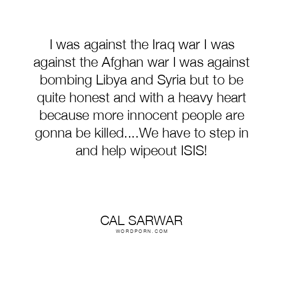 I was against the Iraq war I was against the Afghan war I was against bombing Libya and Syria but to be quite honest and with a heavy heart because more innocent people are gonna be killed....We have to step in and help wipeout ISIS!