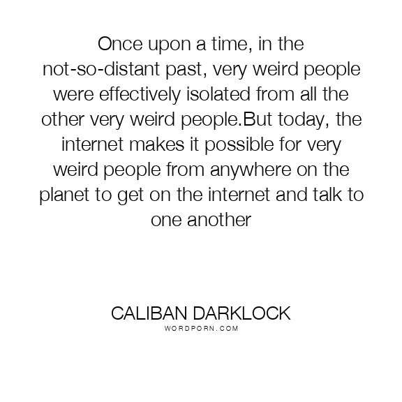 Once upon a time, in the not-so-distant past, very weird people were effectively isolated from all the other very weird people.But today, the internet makes it possible for very weird people from anywhere on the planet to get on the internet and talk to one another