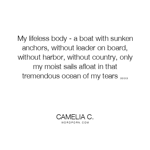 My lifeless body - a boat with sunken anchors, without leader on board, without harbor, without country, only my moist sails afloat in that tremendous ocean of my tears ,,,,