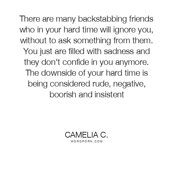 There are many backstabbing friends who in your hard time will ignore you, without to ask something from them. You just are filled with sadness and they don't confide in you anymore. The downside of your hard time is being considered rude, negative, boorish and insistent