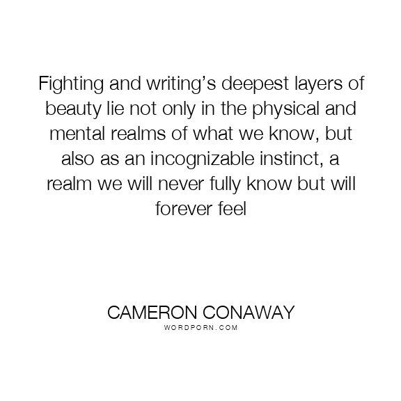 Fighting and writing’s deepest layers of beauty lie not only in the physical and mental realms of what we know, but also as an incognizable instinct, a realm we will never fully know but will forever feel