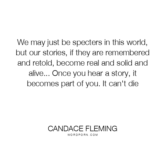 We may just be specters in this world, but our stories, if they are remembered and retold, become real and solid and alive... Once you hear a story, it becomes part of you. It can't die