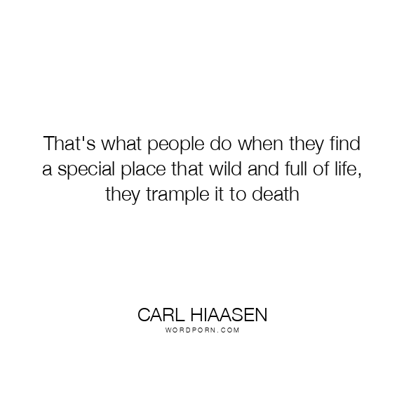 That's what people do when they find a special place that wild and full of life, they trample it to death