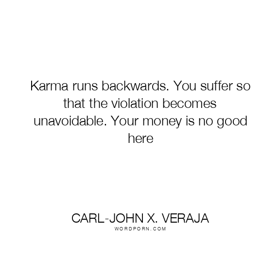 Karma runs backwards. You suffer so that the violation becomes unavoidable. Your money is no good here