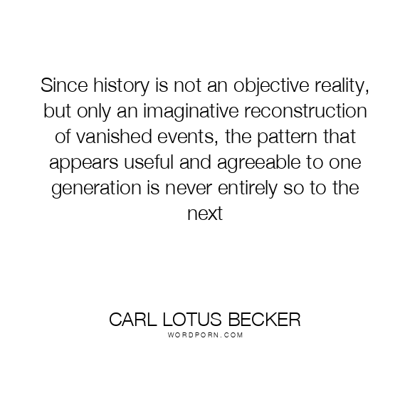 Since history is not an objective reality, but only an imaginative reconstruction of vanished events, the pattern that appears useful and agreeable to one generation is never entirely so to the next
