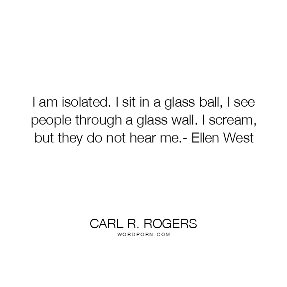 I am isolated. I sit in a glass ball, I see people through a glass wall. I scream, but they do not hear me.- Ellen West