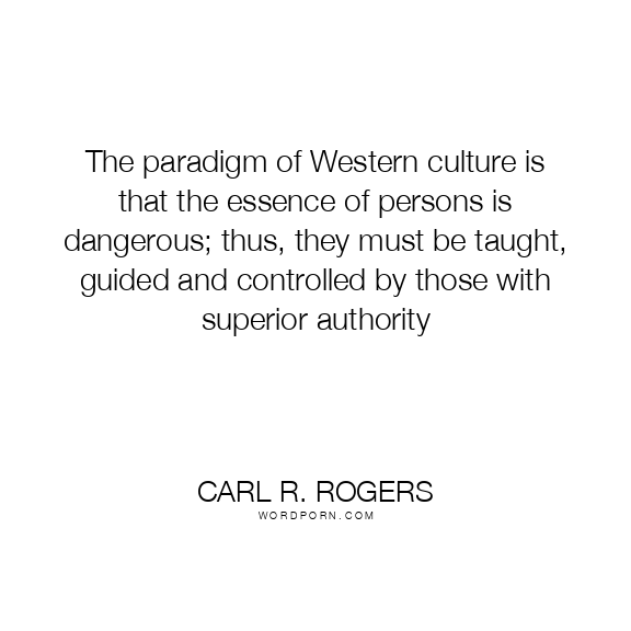 The paradigm of Western culture is that the essence of persons is dangerous; thus, they must be taught, guided and controlled by those with superior authority