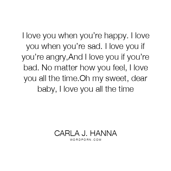 I love you when you’re happy. I love you when you’re sad. I love you if you’re angry,And I love you if you’re bad. No matter how you feel, I love you all the time.Oh my sweet, dear baby, I love you all the time