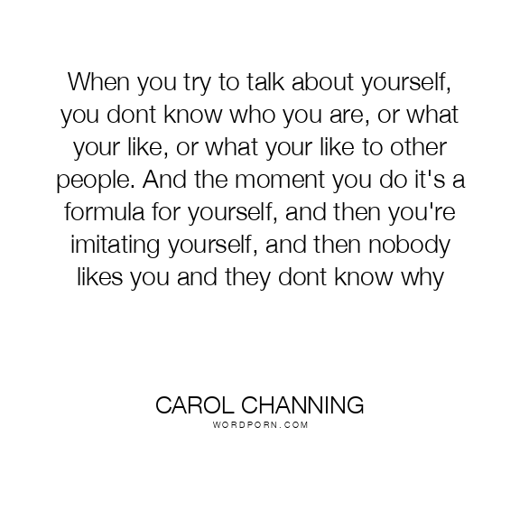 When you try to talk about yourself, you dont know who you are, or what your like, or what your like to other people. And the moment you do it's a formula for yourself, and then you're imitating yourself, and then nobody likes you and they dont know why