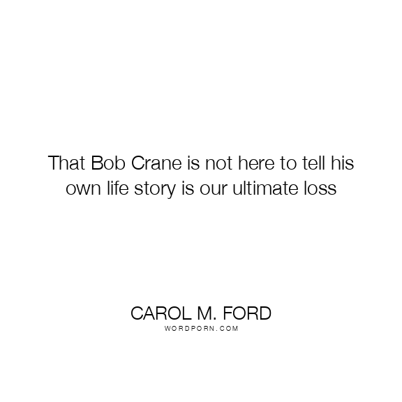 That Bob Crane is not here to tell his own life story is our ultimate loss