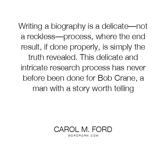 Writing a biography is a delicate—not a reckless—process, where the end result, if done properly, is simply the truth revealed. This delicate and intricate research process has never before been done for Bob Crane, a man with a story worth telling