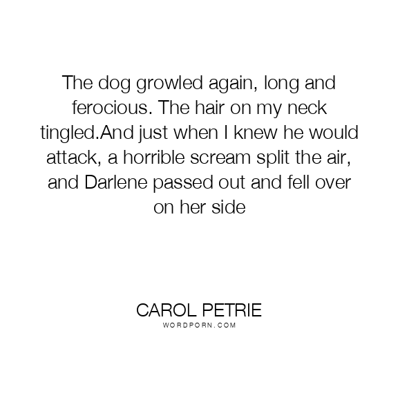 The dog growled again, long and ferocious. The hair on my neck tingled.And just when I knew he would attack, a horrible scream split the air, and Darlene passed out and fell over on her side