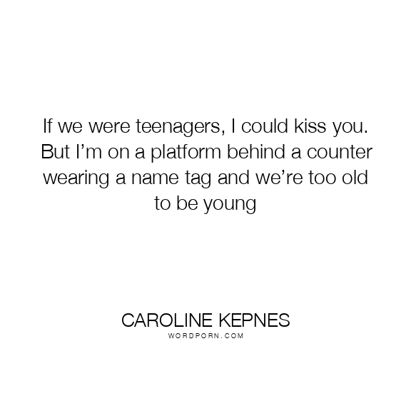 If we were teenagers, I could kiss you. But I’m on a platform behind a counter wearing a name tag and we’re too old to be young