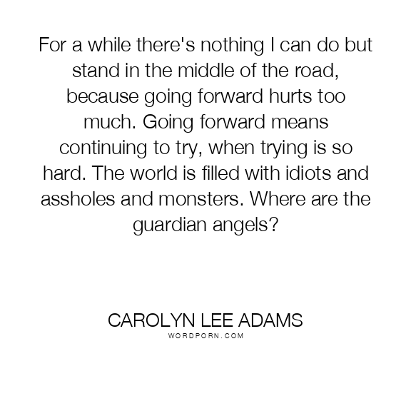 For a while there's nothing I can do but stand in the middle of the road, because going forward hurts too much. Going forward means continuing to try, when trying is so hard. The world is filled with idiots and assholes and monsters. Where are the guardian angels?