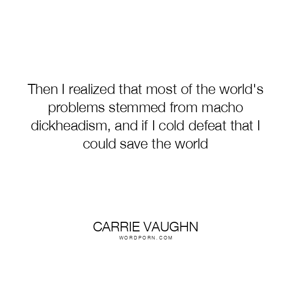 Then I realized that most of the world's problems stemmed from macho dickheadism, and if I cold defeat that I could save the world