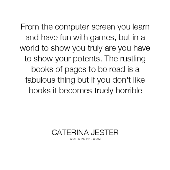 From the computer screen you learn and have fun with games, but in a world to show you truly are you have to show your potents. The rustling books of pages to be read is a fabulous thing but if you don't like books it becomes truely horrible