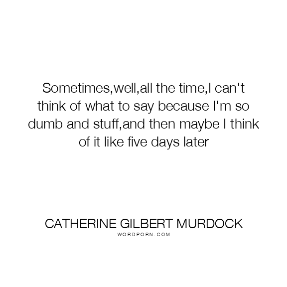 Sometimes,well,all the time,I can't think of what to say because I'm so dumb and stuff,and then maybe I think of it like five days later