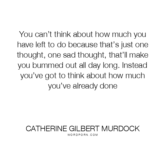 You can’t think about how much you have left to do because that’s just one thought, one sad thought, that’ll make you bummed out all day long. Instead you’ve got to think about how much you’ve already done