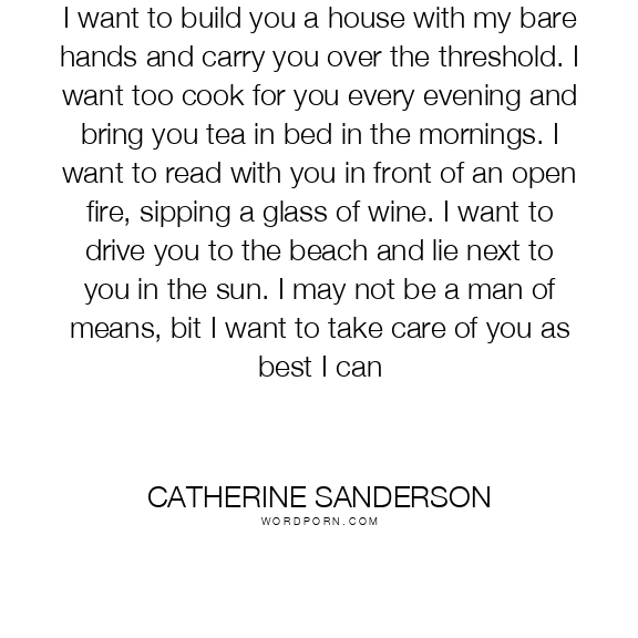 I want to build you a house with my bare hands and carry you over the threshold. I want too cook for you every evening and bring you tea in bed in the mornings. I want to read with you in front of an open fire, sipping a glass of wine. I want to drive you to the beach and lie next to you in the sun. I may not be a man of means, bit I want to take care of you as best I can