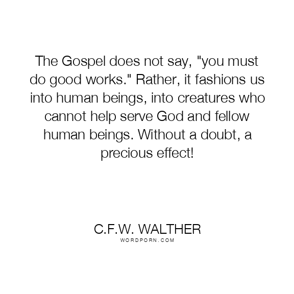 The Gospel does not say, "you must do good works." Rather, it fashions us into human beings, into creatures who cannot help serve God and fellow human beings. Without a doubt, a precious effect!