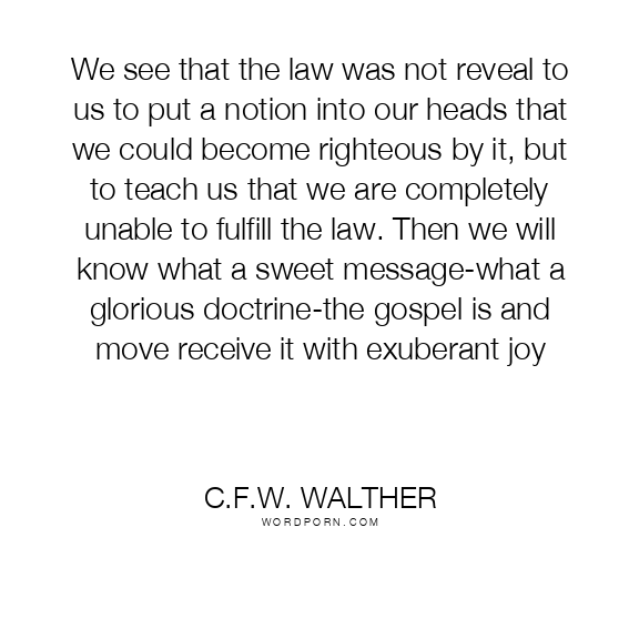 We see that the law was not reveal to us to put a notion into our heads that we could become righteous by it, but to teach us that we are completely unable to fulfill the law. Then we will know what a sweet message-what a glorious doctrine-the gospel is and move receive it with exuberant joy