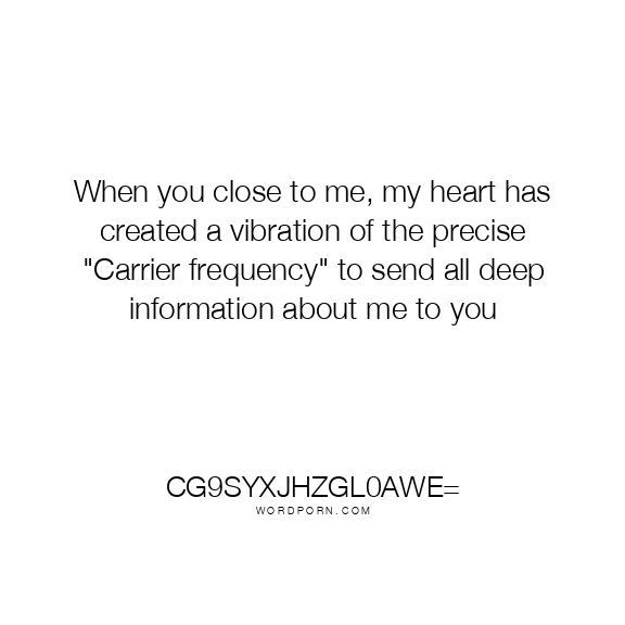 When you close to me, my heart has created a vibration of the precise "Carrier frequency" to send all deep information about me to you
