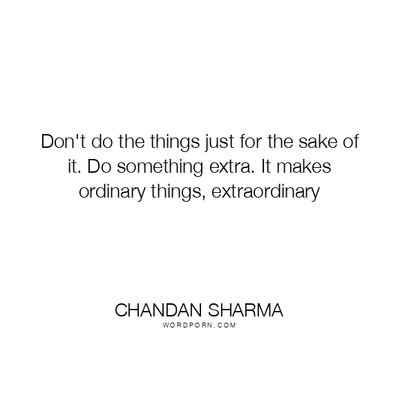 Don't do the things just for the sake of it. Do something extra. It makes ordinary things, extraordinary