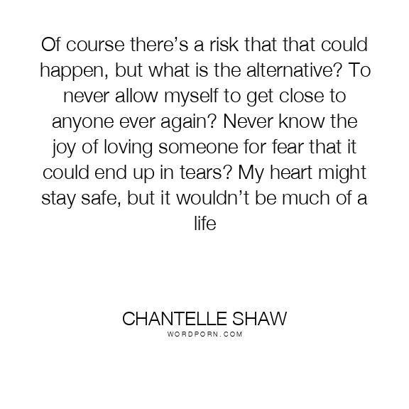 Of course there’s a risk that that could happen, but what is the alternative? To never allow myself to get close to anyone ever again? Never know the joy of loving someone for fear that it could end up in tears? My heart might stay safe, but it wouldn’t be much of a life