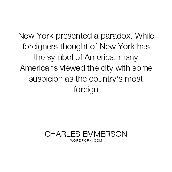 New York presented a paradox. While foreigners thought of New York has the symbol of America, many Americans viewed the city with some suspicion as the country's most foreign